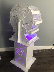 A great new addition to our hire stock arrived January 2021, our all new sweet ferris wheel which we hire and deliver across Essex. This is a fantastic alternative to our sweet cart. The LED light up wheel offers many colors, also a modern approach to your party as it comes set up on a heart podium or even can be placed on a table. This holds around 20kg of pic and mix sweets which we can supply for you along with traditional stripy paper sweet bags at the color of your choice! for more information please visit our Essex sweet ferris wheel page. Or call 0758101884 and a member of our team would be happy to help!